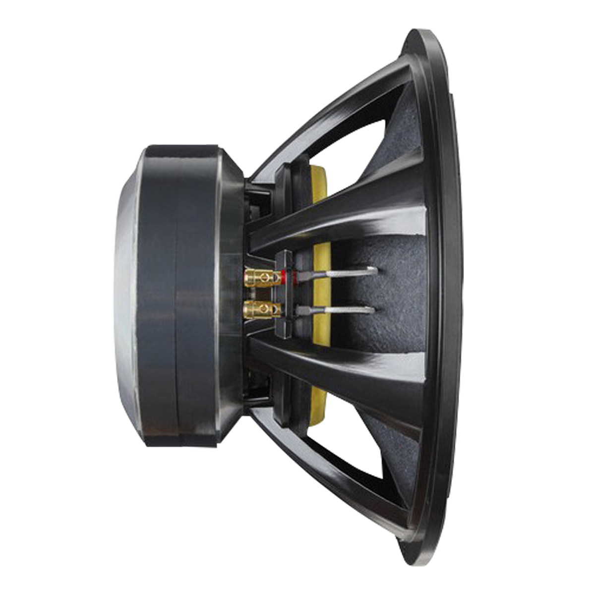 impedancia nominal: 2 ohmios Potencia Competición: 4000w Potencia Musical: 2000w Potencia RMS: 1000w respuesta en frecuencia (-10 dB): 56 – 4800 Hz respuesta en frecuencia (-3 dB): 84 – 360 Hz Sensibilidad (banda efectiva): 92dB SPL diámetro de la bobina: 99mm Altura de bobinado / Capas: 31 mm / 2 Material del cuerpo de la bobina: Kaptón material de alambre de bobina: CCAW altura de la brecha: 14,5 mm Xmax (compensación máxima pico): 8,25mm Xlim (antes del daño): 20mm diámetro del imán: 220X50mm material del cono: Celulosa con fibra de vidrio material de centrado: Poliéster + Algodón material de la canal : Aluminio Inyectado Peso neto: 20 kg Volumen del altavoz ocupado en la caja: 6,15 litros PARAMETROS Fs (frecuencia de resonancia): 70 Hz Vas (volumen equivalente del altavoz): 13,99 litros Qts (factor de calidad): 0,46 Qes (factor de calidad eléctrica): 0.47 Qms (factor de calidad mecánica): 13.61 Ƞo (eficiencia de referencia): 0.97% Sd (área efectiva del cono): 511 cm² βL (densidad de flujo X longitud efectiva del cable de la bobina): 14.43 Tim sensibilidad: 92,06dB (SPL) Re: (Resistencia eléctrica DC): 1,67 Ω Z me: (impedancia mínima) : 2,57 Ω Mms: (masa móvil) : 134,70g Cms: / (cumplimiento mecánico): 0,04 mm/N Le @ 1kHz (inductancia de bobina): 0,46 mH Le @ 10kHz (inductancia de bobina): 0,23 mH