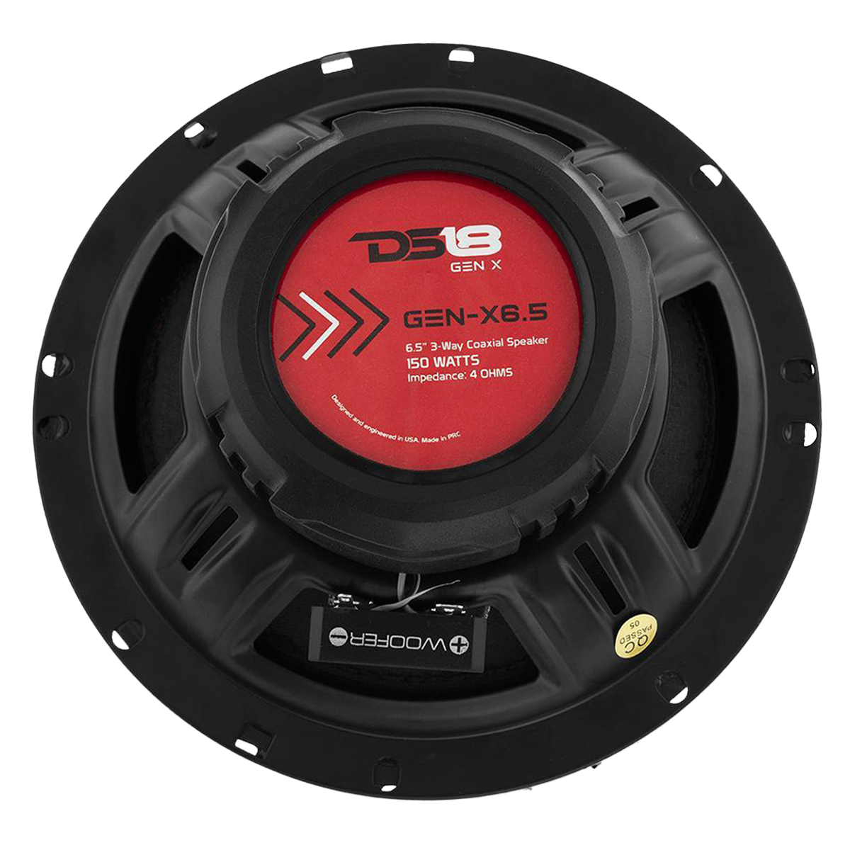 Especificaciones técnicas: • Modelo: GEN-X6.5 • Potencia RMS: 50w • Potencia pico: 150w • Impedancia: 4 Ohmios • Sensibilidad: 85 dB • Respuesta de frecuencia: 75Hz – 20000 Hz • Cono de papel negro con borde de goma • Diámetro del orificio de montaje: 156 mm • Profundidad de montaje: 54 mm