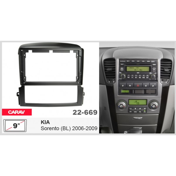 MARCO PARA LA INSTALACIÓN DE RADIO CARAV 22-669: 2 DIN / 9 PULGADAS / 230:220 x 130mm KIA Sorento 2006-2009 • 3D diseñada digitalmente • Fábrica de estilo textura • Construido de alta calidad, alto calor de automoción de grado plástico ABS • Los kits de coincidir con el de la fábrica de guión se adapta perfectamente • Precisión soportes y separadores de hacer la instalación fácil y segura • 100% satisfacción garantizada