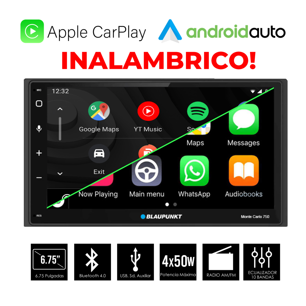 MONTE CARLO 750 RADIO BLAUPUNKT MONTE CARLO | BLUETOOTH, CARPLAY & ANDROID AUTO INALAMBRICO (PRECIO MAS IMP INT 23.46%)
