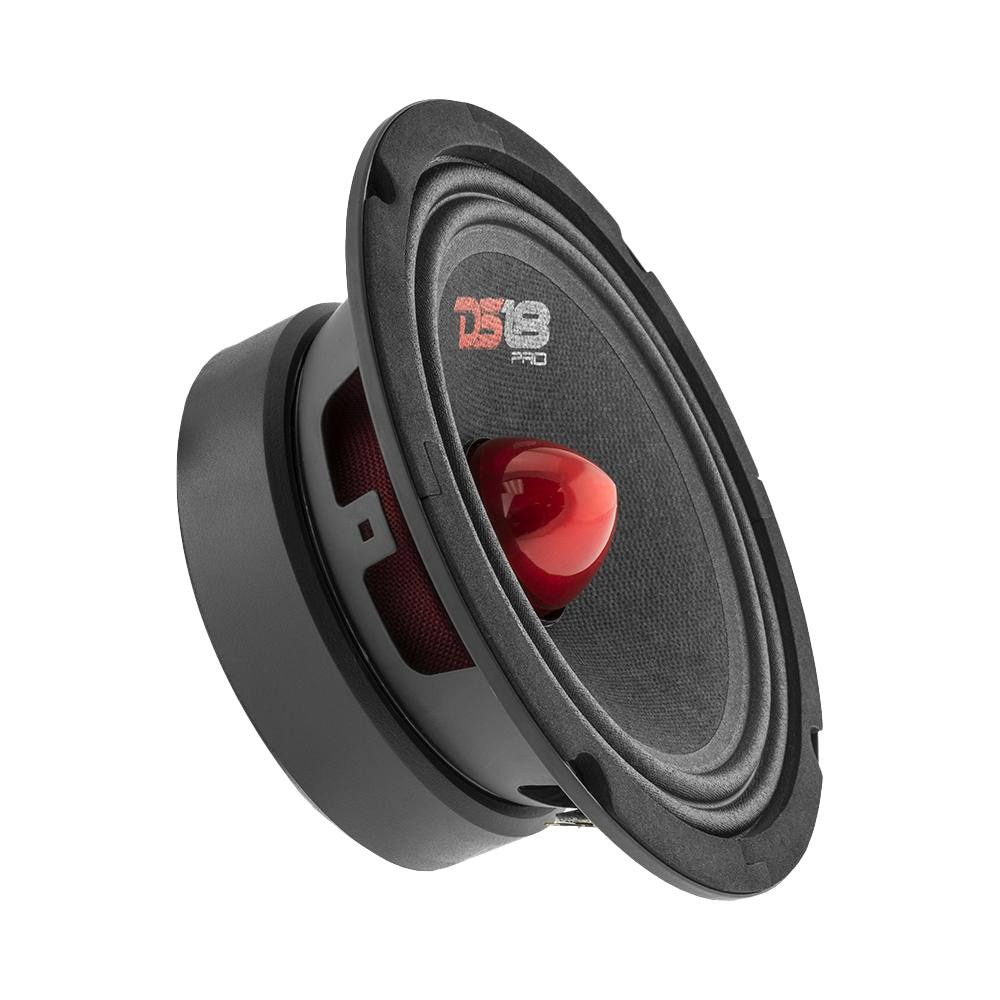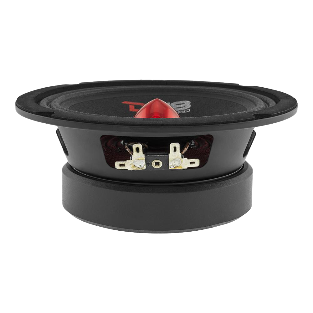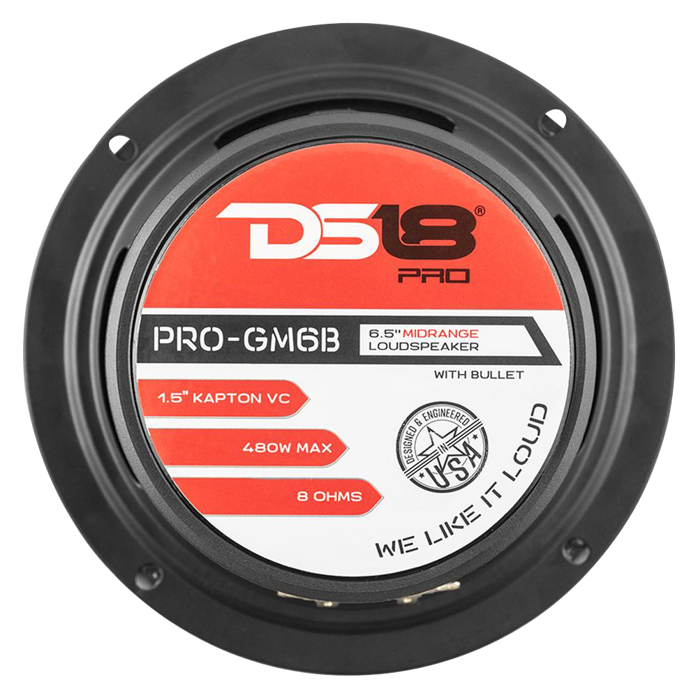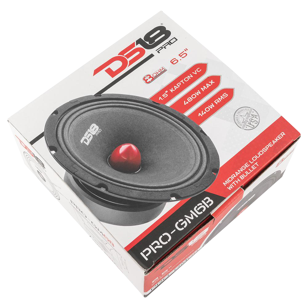 Especificaciones técnicas: • Modelo: PRO-GM6B • Tipo: Medio con bala (Midrange) • Tamaño: 6.5 (pulgadas) • Potencia RMS: 140W • Máximo poder: 480W • Respuesta de frecuencia: 160Hz – 10KHz • Impedancia: 8 ohms • Sensibilidad: 94dB • Borde: Tela • Marco: Canasta de acero con sello negro • Cono: Cono de woofer de papel negro • Imán: Ferrito • Cable de bobina: Kapton • Tamaño de la bobina de voz: 1.5 (pulgadas) • Tamaño del imán: 23 oz • Profundidad de montaje: 2.72 (69 mm) • Dimensión de corte: 5.7 (145 mm)