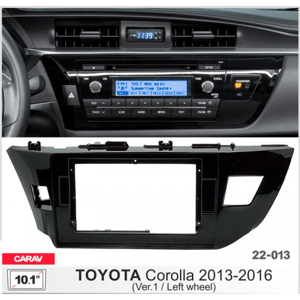 MARCO PARA LA INSTALACIÓN DE RADIO CARAV 22-013: 2 DIN / 10,1 PULGADAS / 250:241 x 146mm TOYOTA Corolla 2013-2016 • 3D diseñada digitalmente • Fábrica de estilo textura • Construido de alta calidad, alto calor de automoción de grado plástico ABS • Los kits de coincidir con el de la fábrica de guión se adapta perfectamente • Precisión soportes y separadores de hacer la instalación fácil y segura • 100% satisfacción garantizada